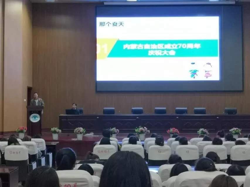 接着,沈程程老师向同学们展示2017年内蒙古成立70周年庆祝大会志愿者的排练及生活视频,令人震撼。随后,沈程程老师详细的做了志愿者工作介绍,主要包括冬运会举办背景、赛事情况、招募岗位情况。让同学们更全面的了解本次志愿者招募工作与流程。同时,沈老师还为大家介绍了北京2022年张家口奥林匹克运动会情况,激发了同学们积极参与的热情。