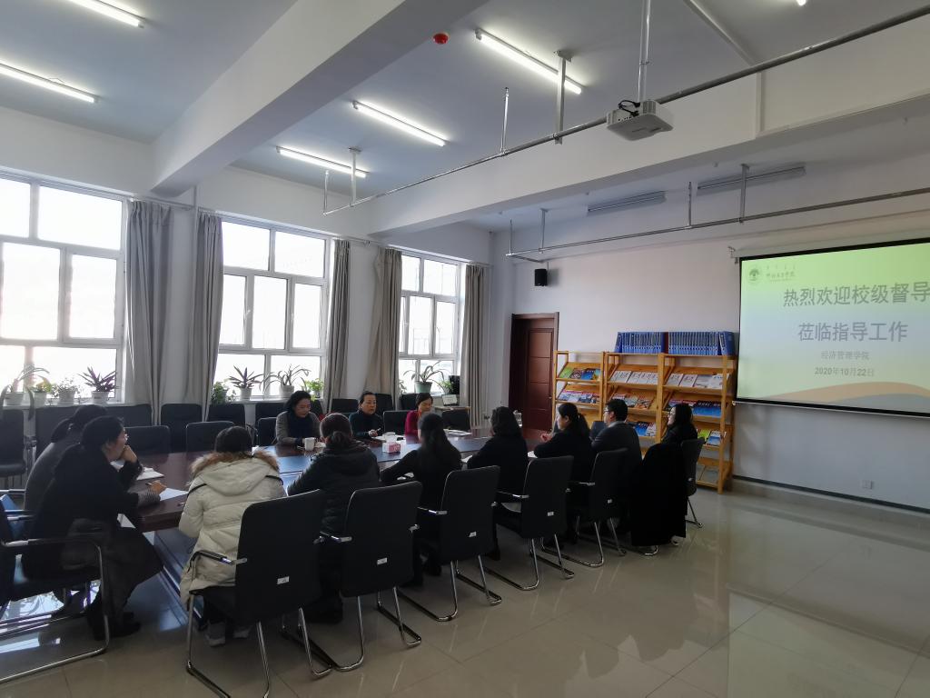 此次文科督导专家利用两个月的时间,随机进入课堂进行听课、看课,对教师的教与学生的学进行监督与指导。10月22日,督导组对beat365官方网站四个专业的2020届毕业生论文、2019-2020学年学生考试试卷进行专项检查。10月27日,参加了国际经济与贸易系的教研活动。督导专家对我院教师的课堂教学、学生学习状态,毕业论文指导、试卷批阅、教研活动的开展等各项教学工作给予了充分肯定,同时针对督导工作中发现的问题提出了改进建议,并从教学改革,人才培养模式、专业认证、课程思政、成果导向等方面对beat365官方网站下一步的发展给予了合理化的建议。beat365官方网站院长李雪峰表示,一定重视各位督导专家反馈的信息,坚持问题导向,认真整改存在问题,全面提高我院的教学质量,进一步规范教学档案,形成运行和反馈的机制。