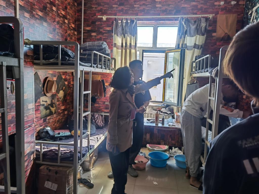 在走访学生宿舍时,老师们对大家的寝室卫生、寝室居住中的不便和困扰进行了详细的询问,深切了解学生诉求。老师们表示,希望同学们能够树立正确的集体观和价值观,建立寝室良好的生活秩序,并叮嘱同学们一定要珍惜在校美好时光,养成良好行为和生活习惯。对于同学们寝室居住中的困难,学院领导表示会积极组织和协调各管理部门尽快帮助解决或缓解。同学们对老师们的关怀表达了衷心感谢,表示一定会加强内务和寝室安全卫生,养成文明的行为习惯。