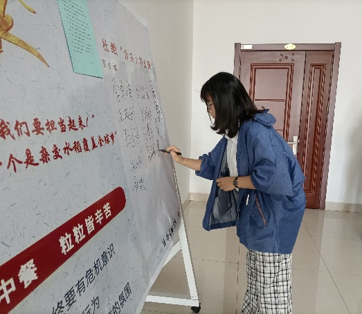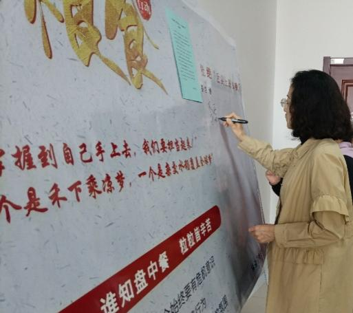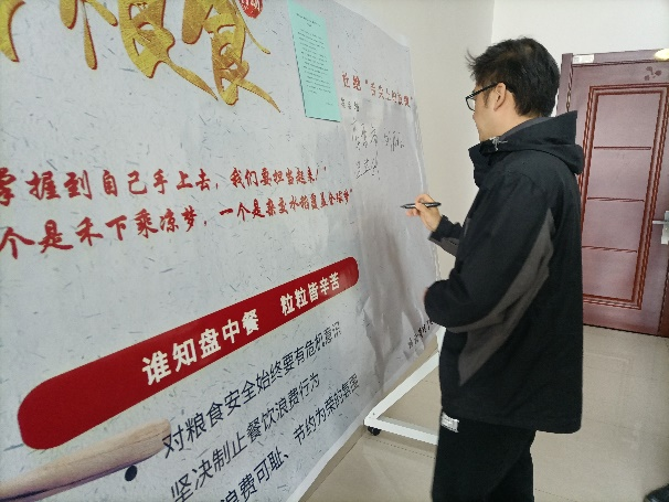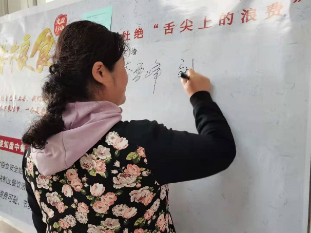 最后,各位老师同学们纷纷在“爱惜粮食,倡导光盘行动,禁止餐饮浪费”展板上签名。