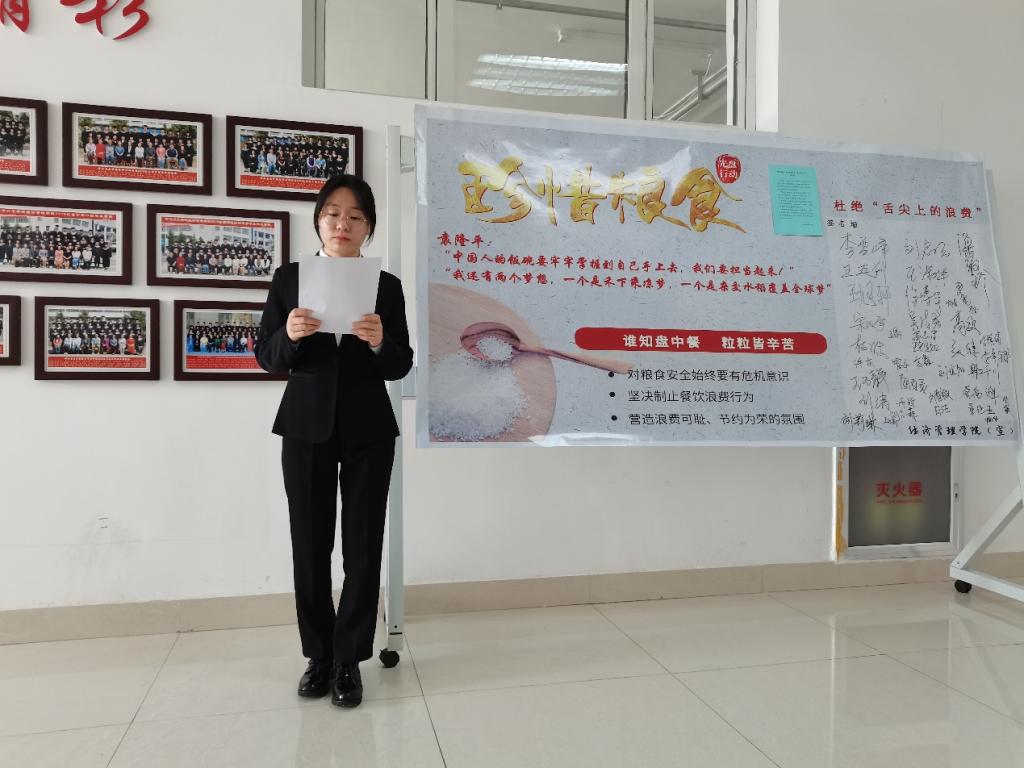 紧接着,进行第二项议程,由beat365官方网站学生代表赵书毓宣读倡议书。“我们要自觉维护节俭用餐的良好风气,自觉抵制舌尖上的浪费,争做光荣的“光盘”族。积极向身边的亲朋好友宣传节约粮食、拒绝浪费的做法,争做“节约粮食、拒绝浪费”的践行者、宣传者、推动者。”