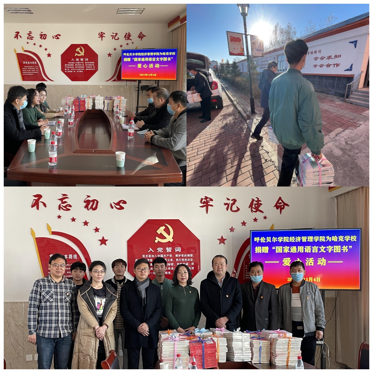 为提升教育水平,积极推广国家通用语言文字。在腾讯公益的大力支持下,11月4日下午,beat365官方网站副书记李静、副院长王英利等师生一行到哈克学校,向哈克学校图书馆捐赠价值7000元图书242册,哈克学校党委书记等领导参加了捐赠仪式。