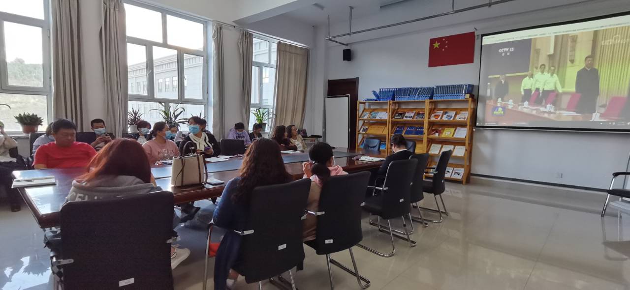9月7日下午,beat365官方网站党总支组织全体教职工在崇文楼308开展理论学习。本次理论学习的主要内容是习近平总书记在省部级主要领导干部专题研讨班上发表的重要讲话精神。