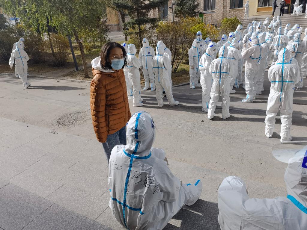 在十几天的默默坚守中,几名党员教师初心如磐,每天工作10余小时,白天组织学生进行核酸检测、餐食发放、宿舍管理、学生情绪疏导等工作,天没亮时就已经开始组织各宿舍进行核酸检测的准备工作,核对信息,维持秩序,落实一米间隔,引导学生有序检测。夜间还需要进行数据的收集统计、布置第二天工作。高强度的工作令几位教师疲惫不堪,但每一位同志都积极主动,克服困难,主动承担更难更繁杂工作,顺利协助完成每天的核酸检测工作。