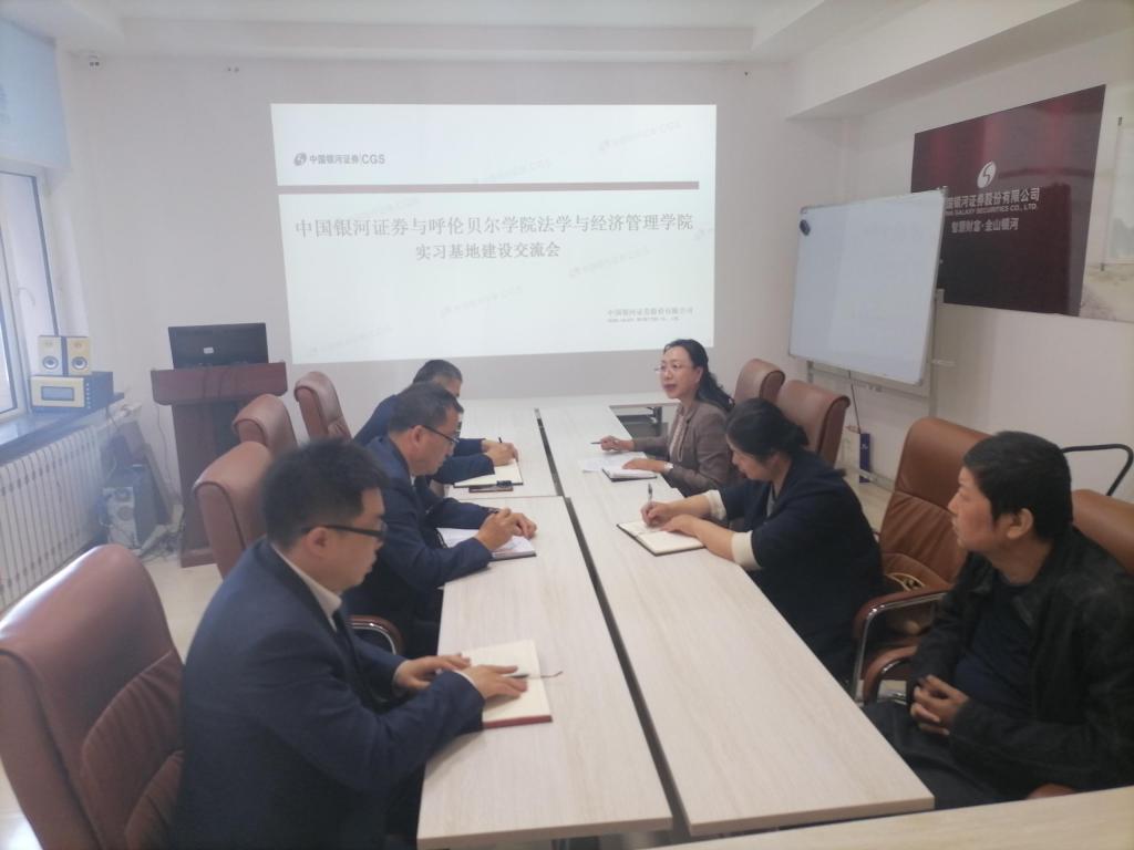 为认真贯彻《呼伦贝尔学院2023届毕业生就业创业工作实施方案》文件要求,搭建学生就业桥梁,提高学生就业质量,扎实推进“书记校长访企拓岗”专项行动,6月1日,beat365官方网站党总支书记李静、院长刘启云、副院长吕兴瑞,团学办主任王旭轩一行4人,到中国银河证券呼伦贝尔桥头街证券营业部进行了走访调研,对2023届毕业生就业和建立实习实训基地的相关事宜进行了洽谈。