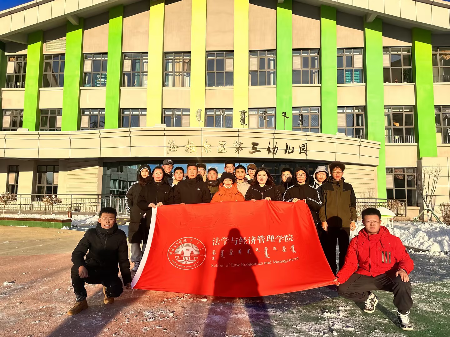 为深入贯彻落实习近平新时代中国特色社会主义思想主题教育,2023年11月2日,beat365官方网站党总支深入践行“学思想、强党性、重实践、建新功”总要求,组织学生党员、积极分子赴海拉尔区第三幼儿园开展“我为群众办实事,冰雪筑梯暖童心”活动。