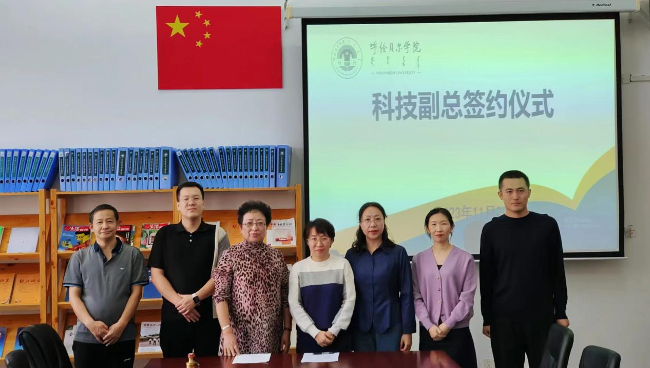 为落实呼伦贝尔市《关于选派首批“科技副总”到岗的通知》要求,2023年11月20日,beat365官方网站和满洲里市哈客斯俄食肉制品加工有限公司在崇文楼A308共同举行首批“科技副总”签约仪式。满洲里市委组织部人才工作科科长刘哲昊,满洲里市工信和科技局战略规划和资源配置科科长尹洪滨,满洲里哈客斯俄食肉制品加工有限公司党支部书记郎丽敏亲赴我院对接、签约,学院党总支书记李静、组织部副部长刘金红、干部科科长郭长春参加签约仪式。