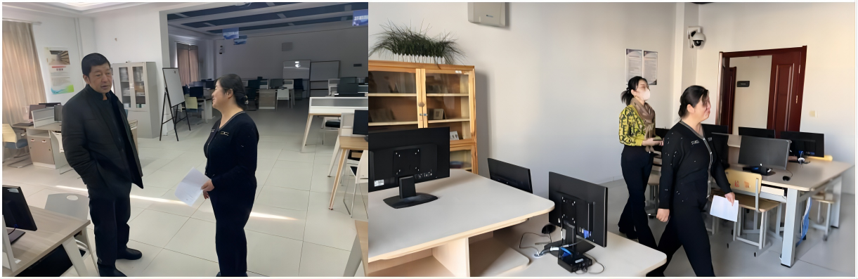 为有效预防和控制各类安全事故的发生,着力防范化解安全风险,确保安全稳定的教学秩序,12月15日上午,beat365官方网站开展了安全检查工作,对教学楼中的教室、实训中心、办公室、走廊以及楼梯进行了全面的安全专项检查。检查内容包括设备和设施完好情况、安全隐患排查情况等方面,重点针对一切可能存在安全隐患的门窗、窗帘、吊灯、地板以及机箱、插销、电线等进行检查,党总支书记李静、院长刘启云、副院长刘欣、副院长吕兴瑞以及各办公室相关负责人员参加检查。