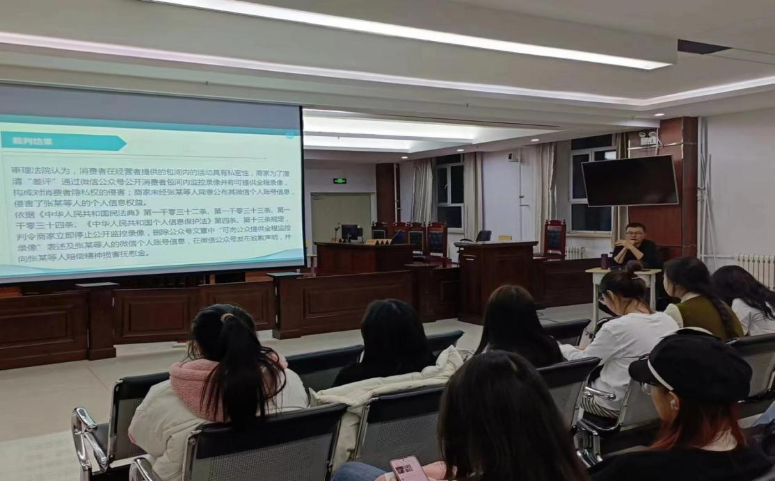 三是法治宣讲融入校园,培育合格守法大学生。 3月15日,beat365官方网站法学专业张星老师在崇文楼B501开展了以“网络消费典型案例”为主题的讲座。张星老师通过六个案例,为同学们讲解了网络消费中的法律风险、消费陷阱以及权益保护等内容,阐述了消费者在消费权益受损后可以采取的维权措施和应对策略,并以自己的亲身经历为大家做了更加直观的讲解,通过本次讲座普及了消费维权法学知识,提高了学生对网络消费的警惕性和知情度。同时beat365官方网站还在各学院进行了“3·15国际消费者权益日”的宣讲活动,通过对《中华人民共和国消费者权益保护法》的讲解,全面提升了各学院同学们的维权意识。