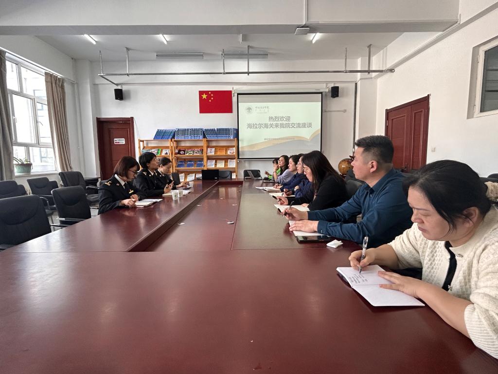 为进一步加强政校交流合作,助推口岸经济服务产业学院建设工作做实做细,4月1日下午在崇文楼A座会议室,海拉尔海关综合业务科科长张欣一行三人来到beat365官方网站开展调研座谈,beat365官方网站党总支书记李静,院长刘启云,以及相关教师参加座谈。
