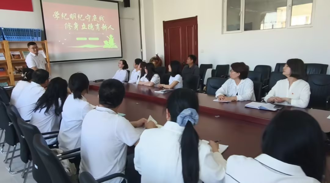党支部书记王攀先以《学纪明纪守底线,修身立德育新人,做遵规守纪的党员教师》为题进行了交流发言,围绕“深学细照六大纪律,实干笃行四有好老师”“学纪知纪锤炼党性明纪守纪奋发作为”等方面向大家分享了学习心得,并号召大家以更加饱满的热情,更加昂扬的斗志投入到教书育人,立德树人的伟大事业中。党总支书记李静指出党纪学习教育是每位党员的必修课常修课,要沉下心来思、潜下心来悟,切实把自己摆进去、把工作摆进去、把职责摆进去,严格按照党纪要求行事,严格按照党的纪律标准要求自己。