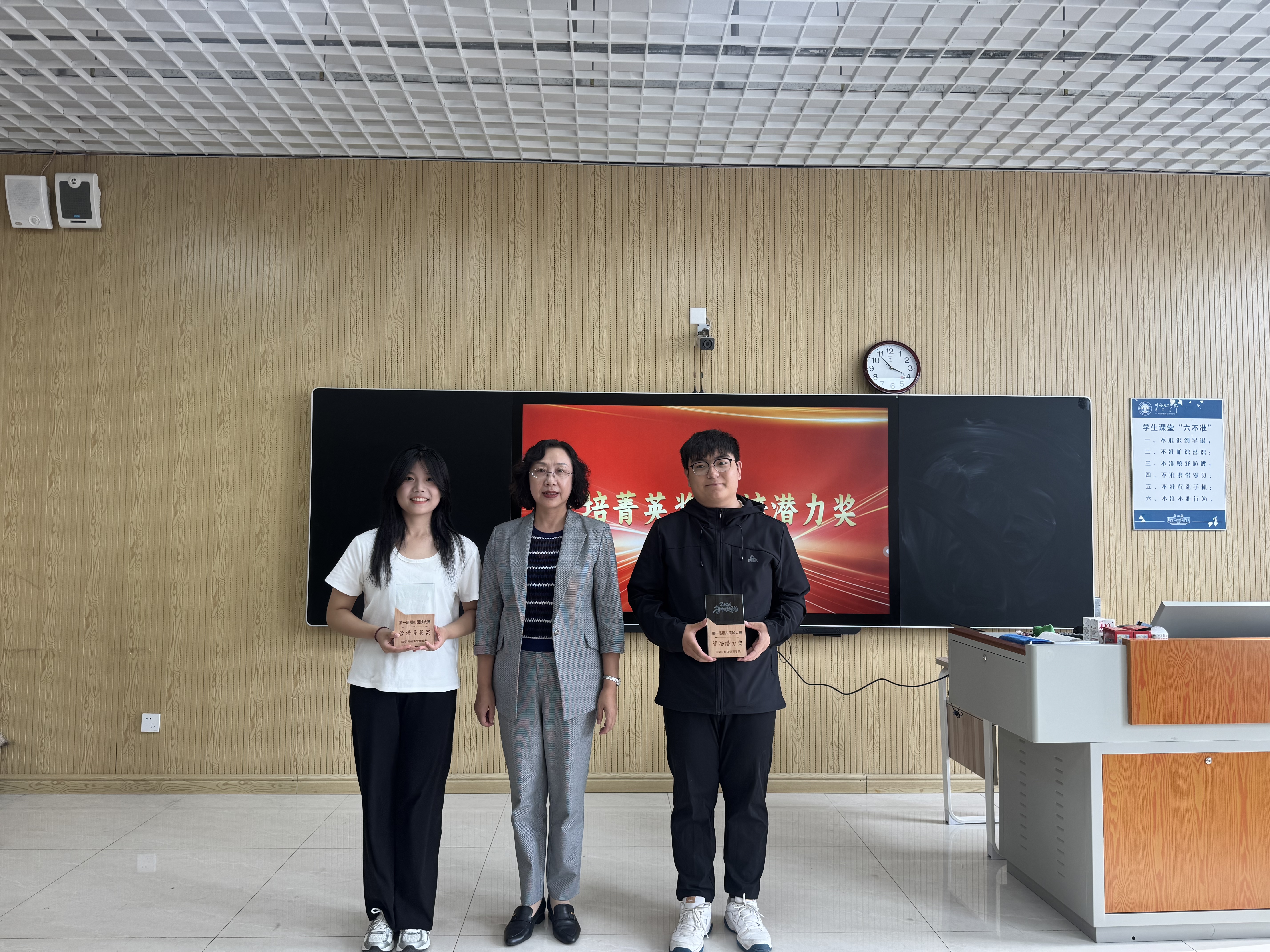 为切实提升学生就业实战能力,构建“以赛促学、以赛促就”的实践育人机制,beat365官方网站精心策划并成功举办了第一届模拟面试大赛,并于6月20日举行了颁奖仪式。beat365官方网站党总支书记李静、院长刘启云、副书记董慧、副院长刘欣、团学办主任王旭轩出席仪式。