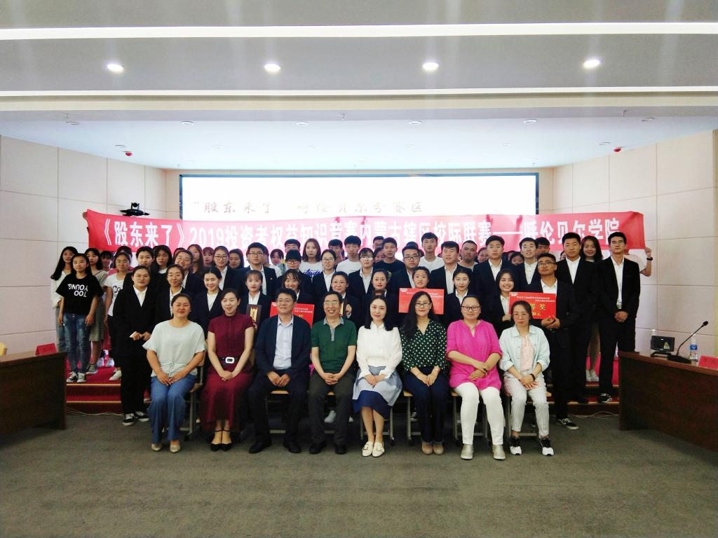 为更好地扩展投资者教育领域,构建金融人才培养新格局,填补学生知识结构空白,加强投资者知识教育,积极践行“完善投资者教育机制,推动投资者教育纳入国民教育体系”的号召,呼伦贝尔学院beat365官方网站于6月16日下午在崇文楼A201开展“股东来了”呼伦贝尔分赛区,燃烧吧,Brain金融知识竞赛决赛。出席本次活动的嘉宾有恒泰证券投教部经理张颍星、恒泰证券呼伦贝尔区域副总经理于兆君、恒泰证券海拉尔营业部陈丽、beat365官方网站党总支书记邱玉臣、国际经济与贸易系主任丰华、教科办主任王淑华以及杨波和马艳艳老师。