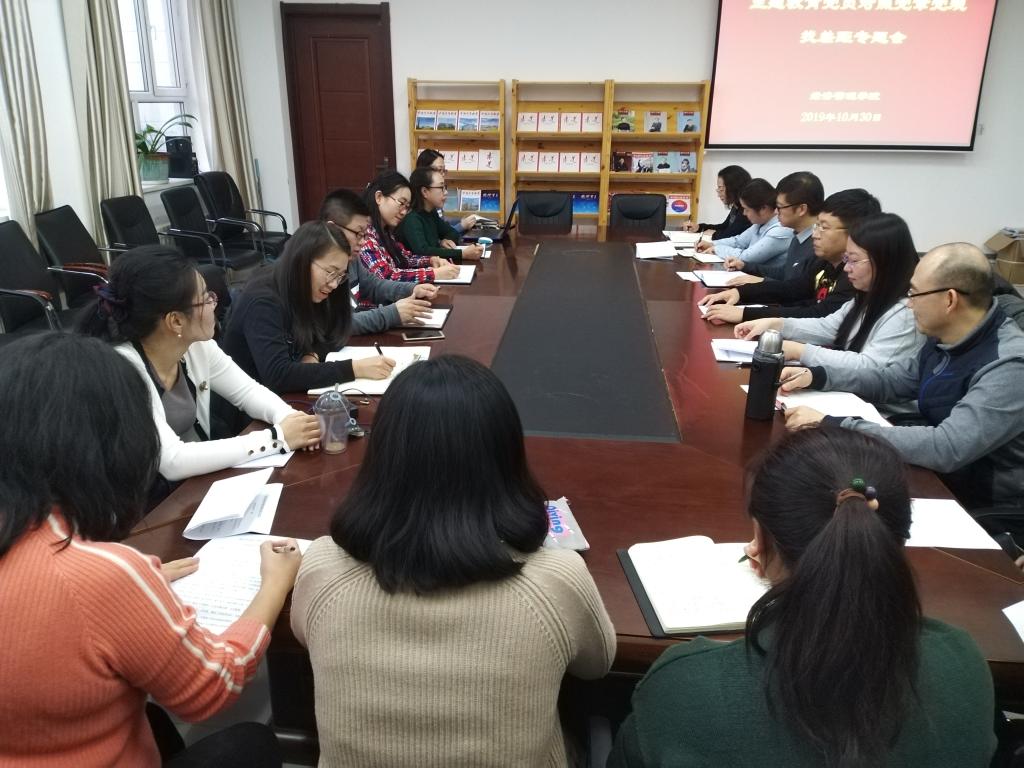 20191030日下午,beat365官方网站全体教工党员在崇文楼A308会议室,开展在“不忘初心、牢记使命”主题教育中对照党章党规找差距的专题会,本次学习由beat365官方网站党总支副书记李静主持。