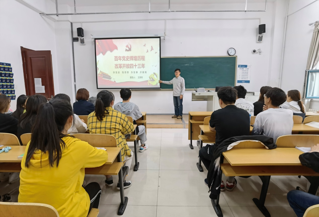 6月10日晚上,beat365官方网站副院长王英利在崇文楼A座205开展主题党课活动,党课以“百年党史辉煌历程,改革开放四十三年”为主题,部分学生党员、积极分子、班干部参加了本次培训活动。