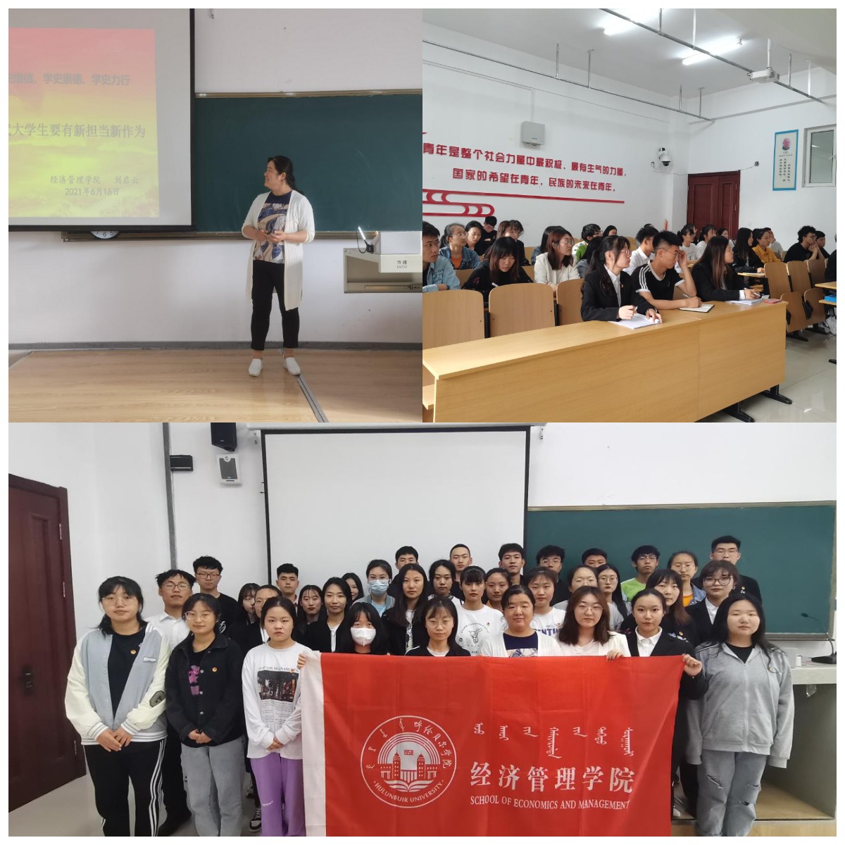 最后,刘启云副院长从开动“脑子”;做好“样子”;强壮“身子”;挑好“担子”;找准“路子”五个方面,为同学们成为勇担当、有作为的新时代青年而指明方法。党课结束后,刘启云副院长和同学们合影留念。